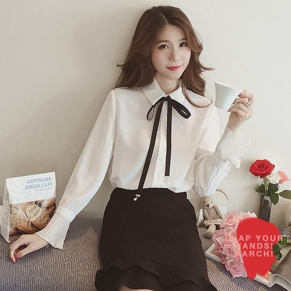 オルチャンファッション 韓国レディースファッション Ah0469 バイカラー リボン タイ カットソー 送料無料 流行オルチャンファッション 人気のプチプラ韓国レディースファッション新作通販 Aliceholly